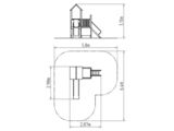 2x négyoldalú torony, A-alakú tető, ferde mászóka lépcsőkkel és fém fogantyúkkal, rajztábla a tornyon, csúszda, golyós számoló a torony alatt, 4x gát HDPE. Több információ