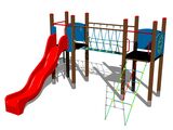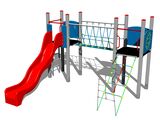 2x négyoldalú torony, függőleges létra, kötélhíd, csúszda, ferde mászóháló, 3x gát HDPE. Több információ