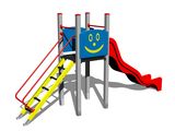 Négyoldalú torony, ferde mászóka lépcsőkkel és fém fogantyúkkal, csúszda, 2x gát. Több információ