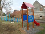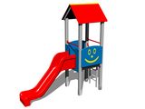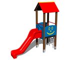 Négyoldalú torony, A-alakú tető, függőleges létra, csúszda, 2x gát. Több információ