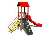 Négyoldalú torony, A-alakú tető, ferde mászóka kötéllel és lépcsőkkel, csúszda, ferde mászóháló, ferde mászóka lépcsőkkel és fém fogantyúkkal. Több információ