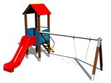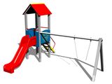 Az ülés és a lengőkarok nem tartoznak a lengéshez. Szükséges a megvásárolható ülőhely (1 db) és a csuklópántok (2 db). Négyoldalú torony, A-alakú tető, ferde mászóka lépcsőkkel és fém fogantyúkkal, csúszda, 2x gát, grinda metalica. Több információ