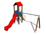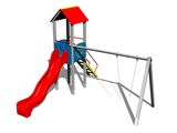 Az ülés és a lengőkarok nem tartoznak a lengéshez. Szükséges a megvásárolható ülőhely (1 db) és a csuklópántok (2 db). Négyoldalú torony, A-alakú tető, ferde mászóka lépcsőkkel és fém fogantyúkkal, csúszda, 2x gát, grinda metalica. Több információ