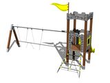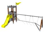 Az ülés és a lengőkarok nem tartoznak a lengéshez. Szükséges a megvásárolható ülőhely (2 db) és a csuklópántok (4 db). Négyoldalú torony, csúszda, ferde mászóháló, 2x gát HDPE, zászló, pártázatos oromzat HDPE, fém gerenda. Több információ