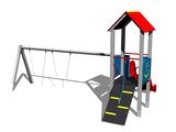 Az ülés és a lengőkarok nem tartoznak a lengéshez. Szükséges a megvásárolható ülőhely (2 db) és a csuklópántok (4 db). Négyoldalú torony, A-alakú tető, ferde mászóka kötéllel és lépcsőkkel, csúszda, 2x gát, láncos dupla hinta. Több információ
