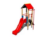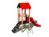 Négyoldalú torony, A-alakú tető, ferde mászóka kötéllel és lépcsőkkel, csúszda, ferde mászóháló, tűzoltó rúd. Több információ