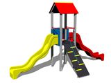 Négyoldalú torony, A-alakú tető, 2x csúszda, ferde mászóka kötéllel és lépcsőkkel, gát. Több információ