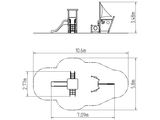 Négyoldalú torony, domború tető, csúszda, ferde mászóháló, gát, ferde mászóka lépcsőkkel és fém fogantyúkkal, rajztábla, zászló, sisak, 2x gát lőrés. Több információ