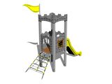 Négyoldalú torony, csúszda, ferde mászóháló, 2x gát HDPE, zászló, pártázatos oromzat HDPE. Több információ