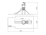 Négyoldalú torony, csúszda, ferde mászóháló, 2x gát HDPE, zászló, pártázatos oromzat HDPE. Több információ