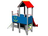 2x négyoldalú torony, A-alakú tető, ferde mászóháló, rajztábla a tornyon, csúszda, golyós számoló a torony alatt, 4x gát HDPE. Több információ