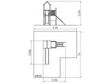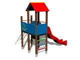 2x négyoldalú torony, A-alakú tető, ferde mászóháló, rajztábla a tornyon, csúszda, golyós számoló a torony alatt, 4x gát HDPE. Több információ
