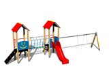 Az ülés és a lengőkarok nem tartoznak a lengéshez. Szükséges a megvásárolható ülőhely (2 db) és a csuklópántok (4 db). 2x Négyoldalú torony, 2x A-alakú tető, fém gerenda, csúszda, kötélhíd, ferde mászóka lépcsőkkel és fém fogantyúkkal, ferde létrás mászóka, ferde mászófal, 2x gát HDPE. Több információ