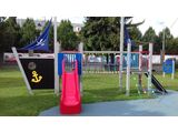 2x Négyoldalú torony, fémkorlát fémkeretbe ültetve, csúszda, kötélhíd, ferde mászóháló, ferde mászóka kötéllel és lépcsőkkel, rajztábla, 2x zászló, sisak, 2x gát HDPE. Több információ