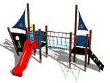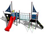 2x Négyoldalú torony, fémkorlát fémkeretbe ültetve, csúszda, kötélhíd, ferde mászóháló, ferde mászóka kötéllel és lépcsőkkel, rajztábla, 2x zászló, sisak, 2x gát HDPE. Több információ