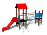 Háromoldalú torony, Négyoldalú torony, A-alakú tető, függőleges létra, kötélhíd, csúszda, ferde mászóháló, gát HDPE. Több információ