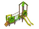 2x Négyoldalú torony, levél alakú tető, csúszda, lejtős rámpa lépcsőkkel és HDPE fogantyúkkal, lejtős rámpa HDPE lépcsőkkel, Kémlelő ablakok, 2x gát HDPE, kötélhíd. Több információ
