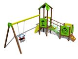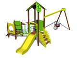 2x Négyoldalú torony, levél alakú tető, csúszda, lejtős rámpa lépcsőkkel és HDPE fogantyúkkal, lejtős rámpa HDPE lépcsőkkel, Kémlelő ablakok, 2x gát HDPE, kötélhíd, Ülés BABY. Több információ