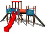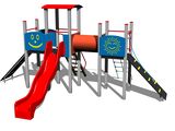 3x négyoldalú torony, csúszda, domború tető, ferde mászóháló, ferde mászóka lépcsőkkel és fém fogantyúkkal, 3x gát HDPE, átmászó alagút a tornyok között, ferde mászóka kötéllel és lépcsőkkel, ferde mászófal. Több információ