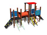 3x négyoldalú torony, csúszda, domború tető, ferde mászóháló, ferde mászóka lépcsőkkel és fém fogantyúkkal, 3x gát HDPE, átmászó alagút a tornyok között, ferde mászóka kötéllel és lépcsőkkel, ferde mászófal. Több információ