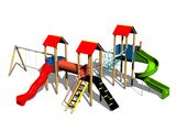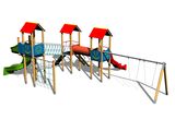 Az ülés és a lengőkarok nem tartoznak a lengéshez. Szükséges a megvásárolható ülőhely (2 db) és a csuklópántok (4 db). 3x Négyoldalú torony, 3x A-alakú tető, fém gerenda, csúszda, óriáscsúszdák, átmászó alagút a tornyok között, ferde mászóka lépcsőkkel és fém fogantyúkkal, ferde mászóka kötéllel és lépcsőkkel, kötélhíd, függőleges mászóháló 2x2 m, 6x gát HDPE. Több információ