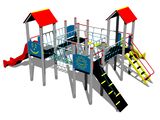 4x Négyoldalú torony, 2x A-alakú tető, 2x csúszda, 2x híd kötélkorláttal, kötélhíd, függőleges létra, ferde mászóka lépcsőkkel és fém fogantyúkkal, ferde mászóka kötéllel és lépcsőkkel, 3x gát HDPE. Több információ