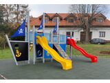 5x Négyoldalú torony, 2x csúszda, rajztábla, ferde mászóháló, ferde mászófal, ferde mászóka kötéllel és lépcsőkkel, függőleges létra, ferde létrás mászóka, 4x Kémlelő ablakok, rajztábla, 3x zászló, sisak, fémkorlát fémkeretbe ültetve, 4x gát HDPE. Több információ