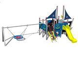 6x négyoldalú torony, 2x csúszda, ferde mászóka lépcsőkkel és fém fogantyúkkal, rajztábla, 2x zászlórúd a zászló, sisak, láncos hinta, 2x gát lőrés, 4x gát HDPE, 2x fémkorlát fakeretbe ültetve, ferde mászóháló. Több információ