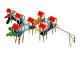Az ülés és a lengőkarok nem tartoznak a lengéshez. Szükséges a megvásárolható ülőhely (2 db) és a csuklópántok (4 db). 7x Négyoldalú torony, 7x A-alakú tető, 2x csúszda, óriáscsúszdák, 9x gát, ferde létrás mászóka, tűzoltó rúd, 2x ferde mászóka lépcsőkkel és fém fogantyúkkal , ferde mászóka kötéllel és lépcsőkkel, pókszerű, 3x kötélhíd, 2x híd kötélkorláttal, átmászó alagút a tornyok között, fém gerenda. Több információ