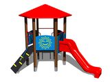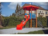 Hatoldalú torony, tető, függőleges létra, ferde mászóka kötéllel és lépcsőkkel, csúszda, 3x gát HDPE. Több információ
