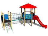 Négyoldalú torony, Hatoldalú torony, tető, csúszda, függőleges létra, kötélhíd, ferde mászóháló, 5x gát HDPE. Több információ